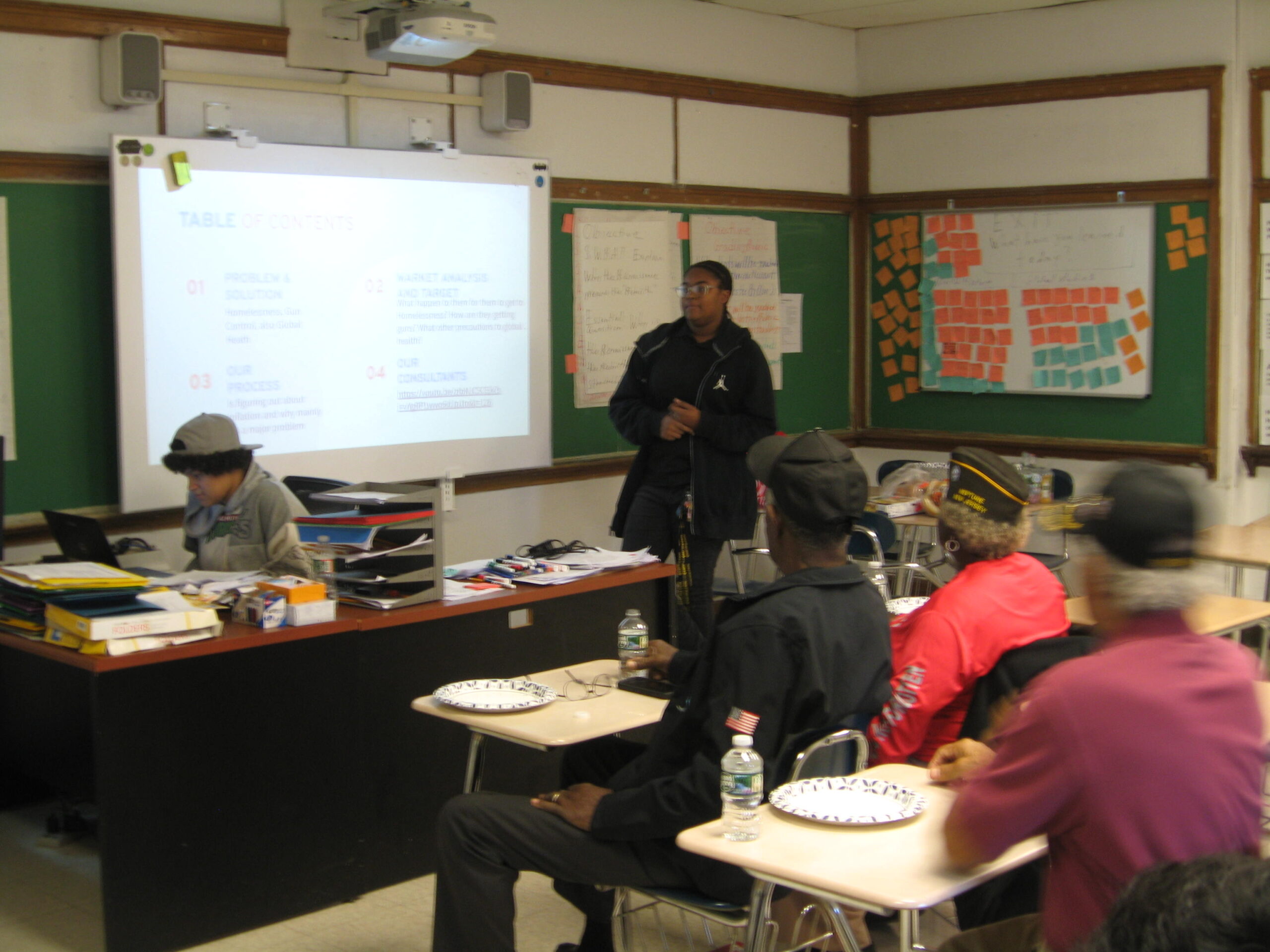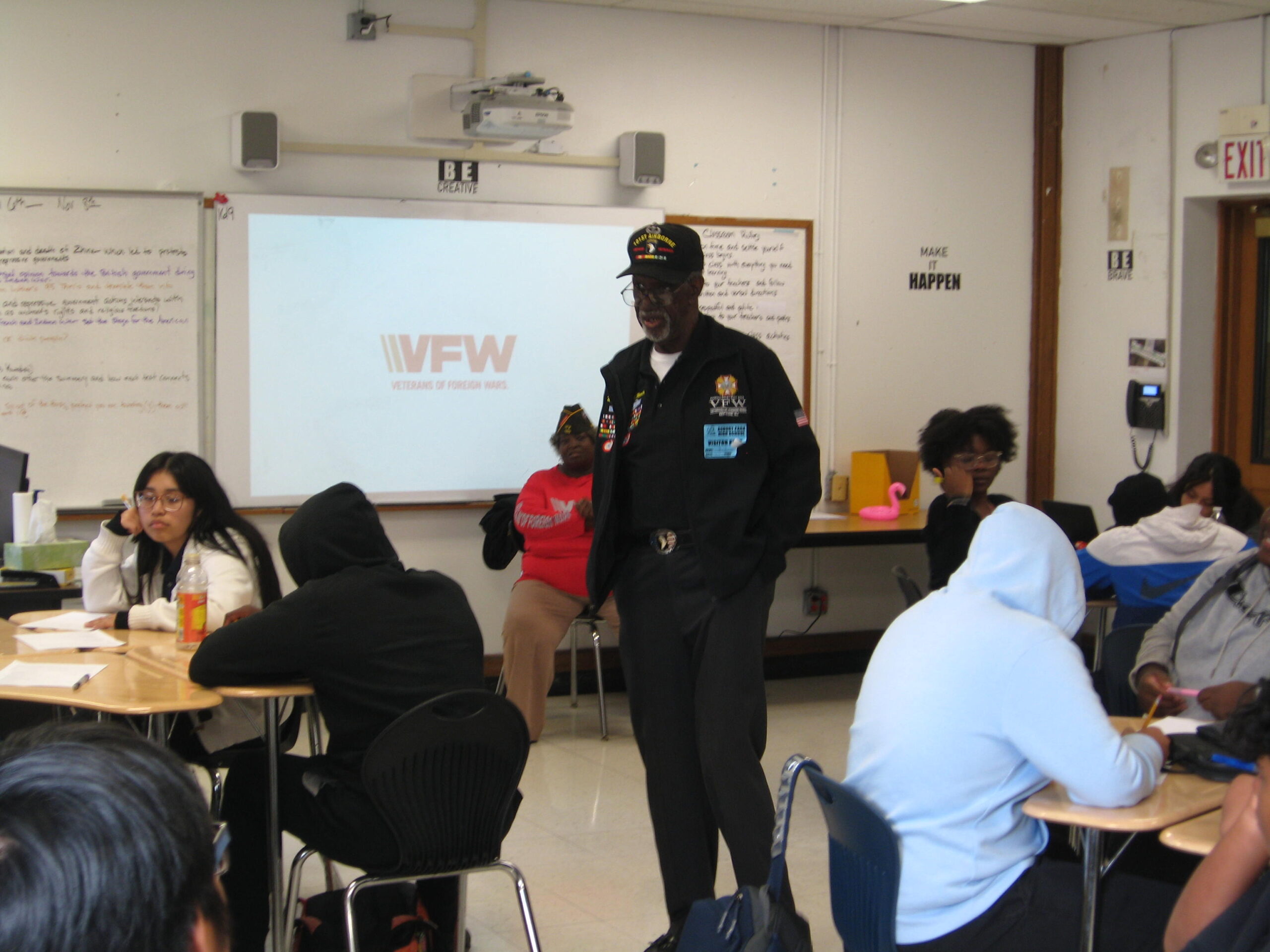 The day began with Mr. Wronko’s students, Dawn Davis Strode, Sarayia Gadson, Angel Hernandez Ruiz, Yadira Herrera-Ortiz, Justin Osorio-Cortes, and Ashton Womble giving the veterans a presentation on their current civics project.